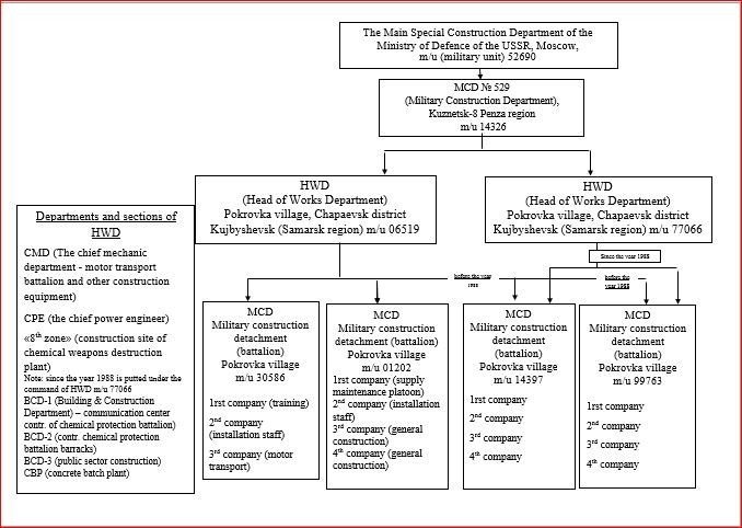 The construction troops subordination structure on the example of 529th Military construction department during the building of the chemical weapons destruction plant in the Samara region.